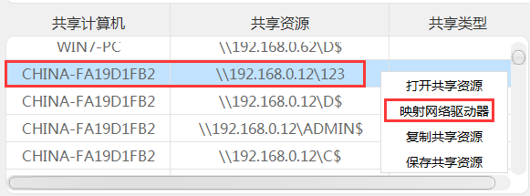 第一步:选择需要连接映射的共享目录-\\192.168.0.12\123