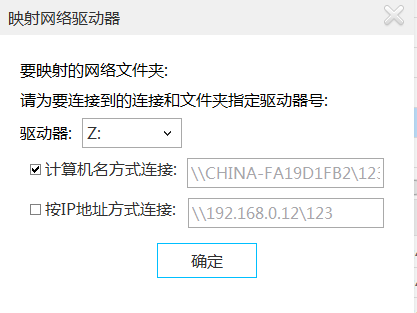 第二步:选择映射到本地的驱动器名称,继续选择按照计算机名还是按照IP地址连接
