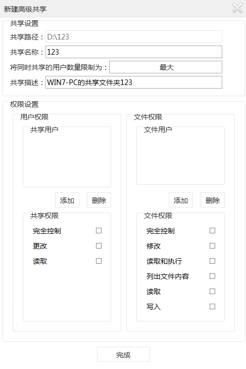 第四步:点击确定按钮,弹出新建高级共享对话框
