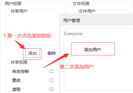 - 共享Everyone权限:表示任何用户登录此计算机的共享访问权限,”完全控制”,“更改”,“读取”,根据需求设置即可