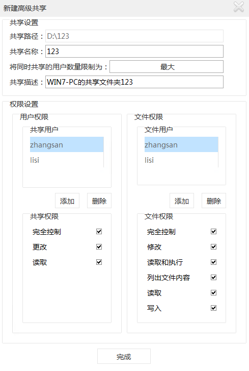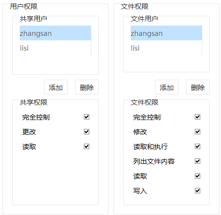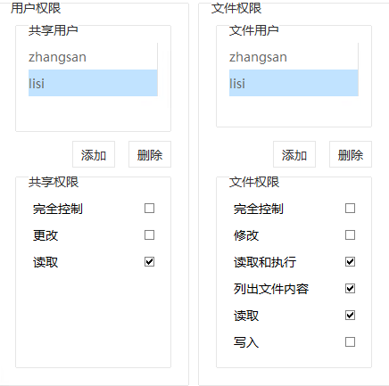 安装上面的步骤依次添加zhangsan完全控制权限和lisi只读权限